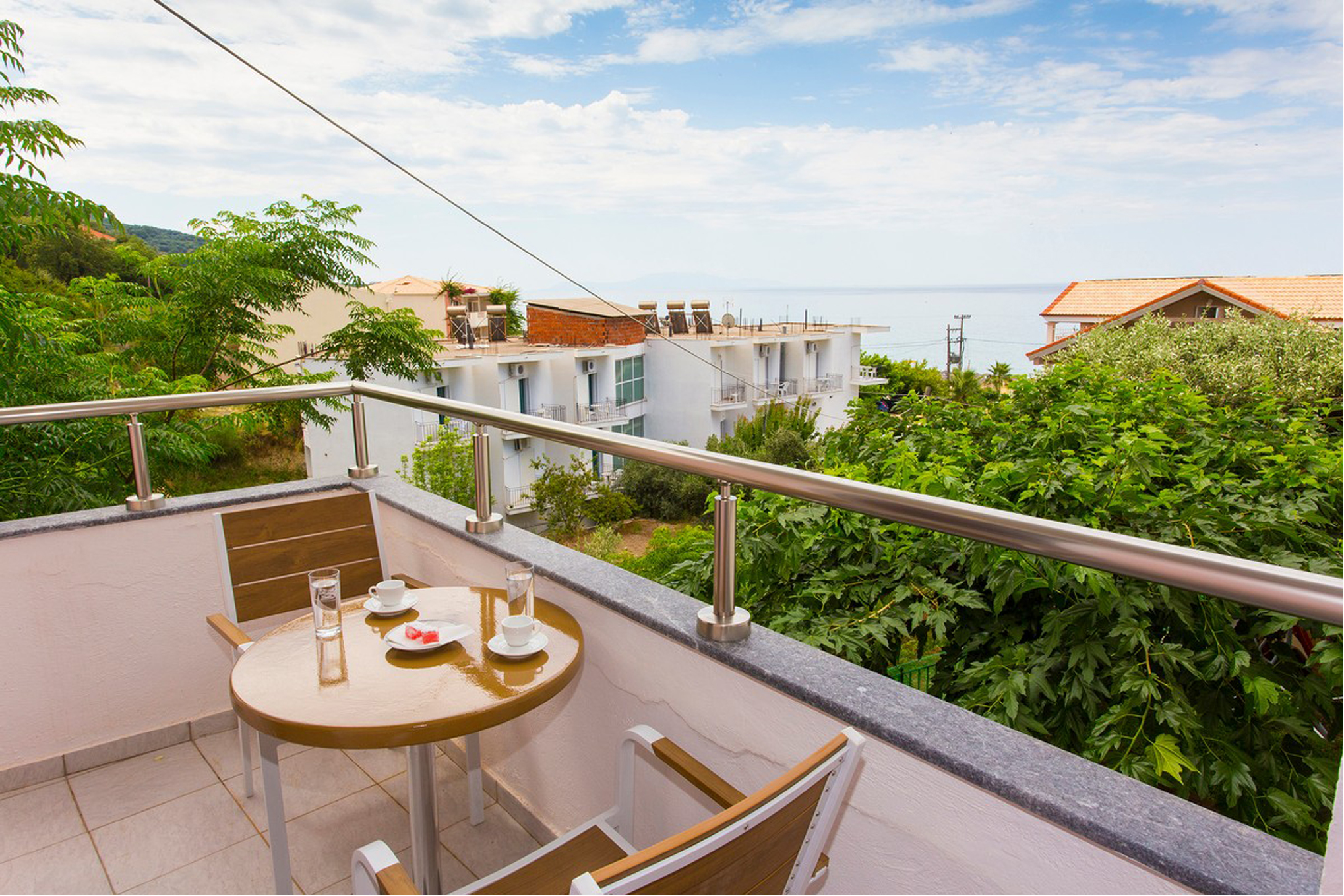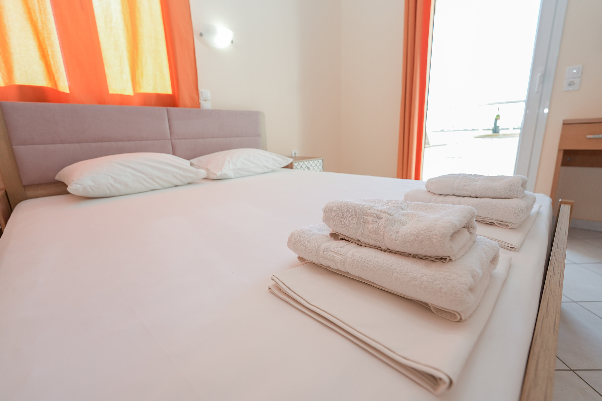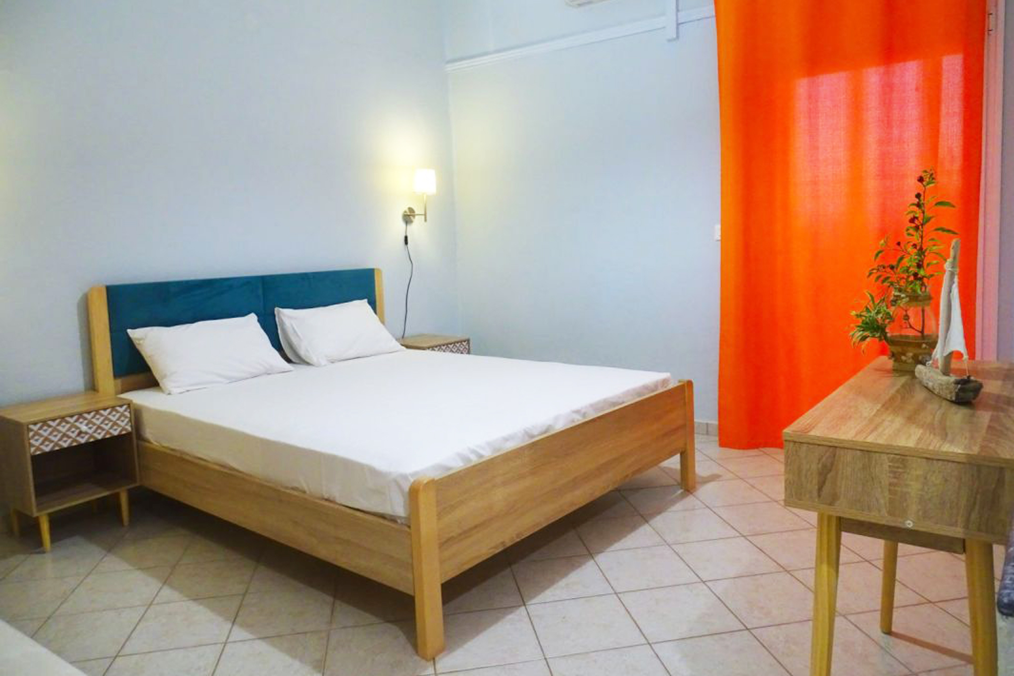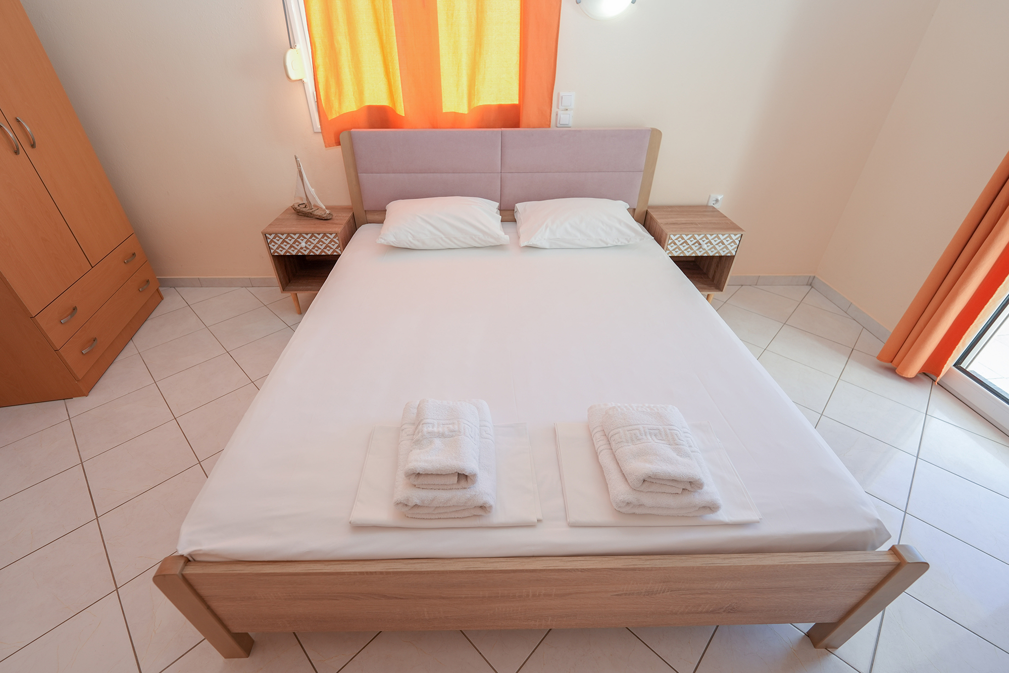 Δίκλινα Δωμάτια Δωμάτιο Ν.5, ισόγειο, με θέα στον κήπο. Δωμάτιο Ν.7, όροφος, με θέα στη θάλασσα. Δωμάτιο Ν.9, όροφος, με θέα στη θάλασσα.